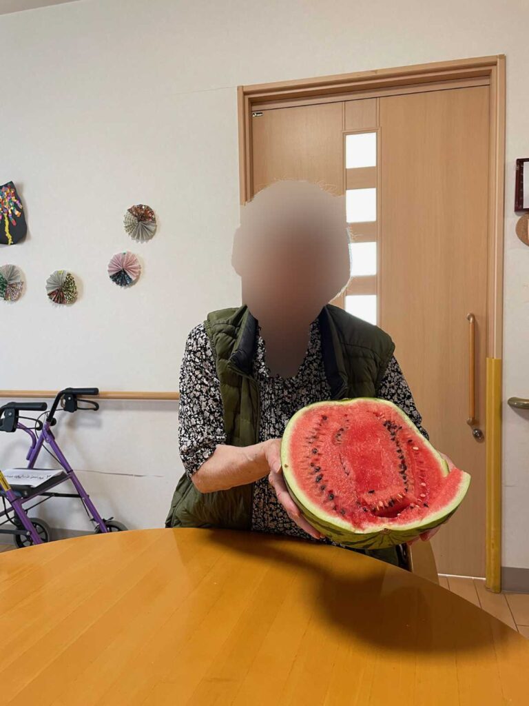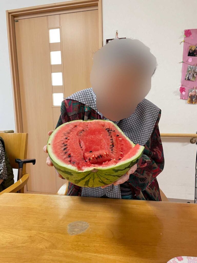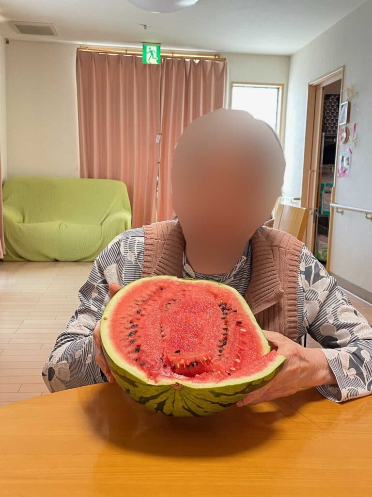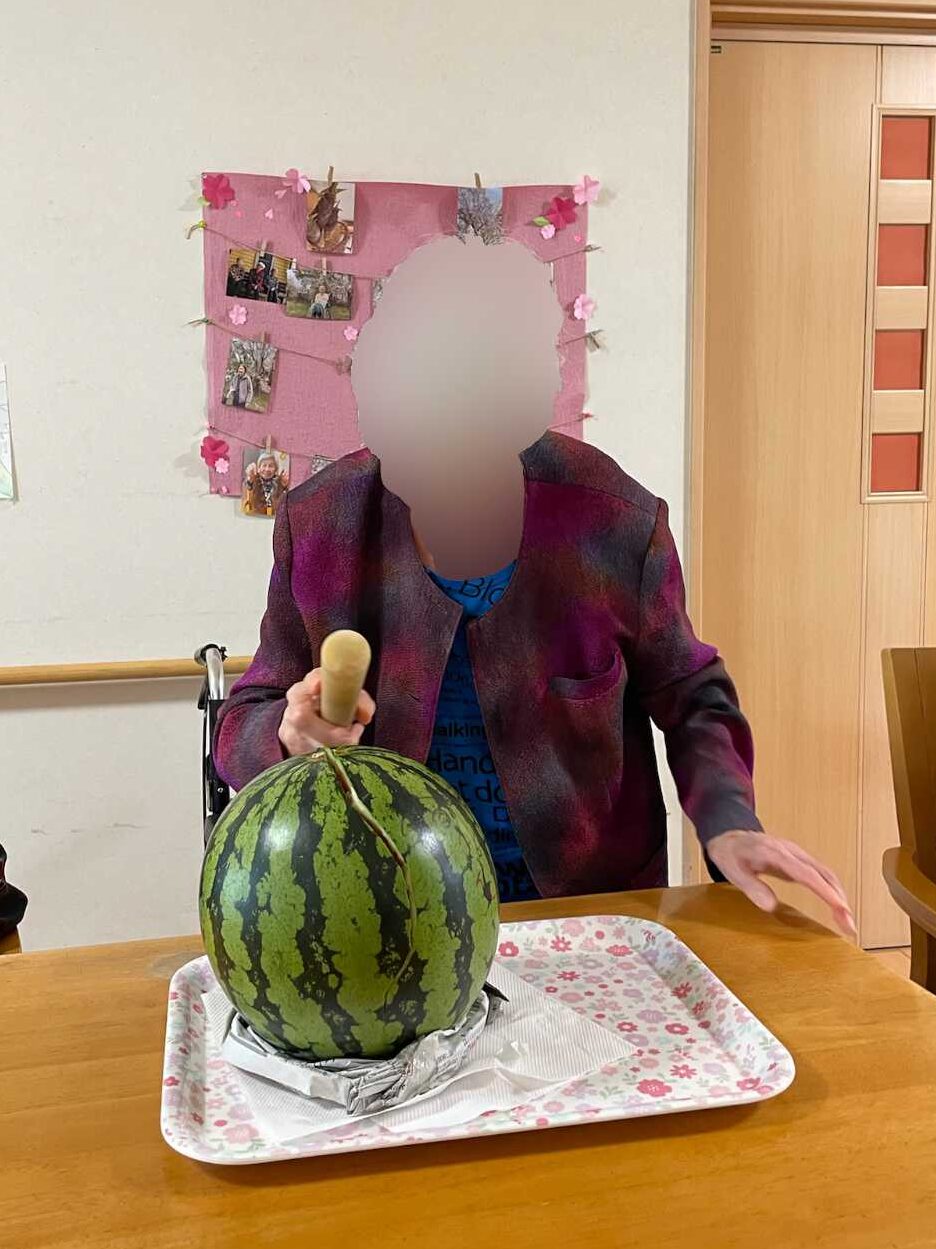 夏の訪れとともに、グループホームあすなろでは、スイカ割りが行われました。